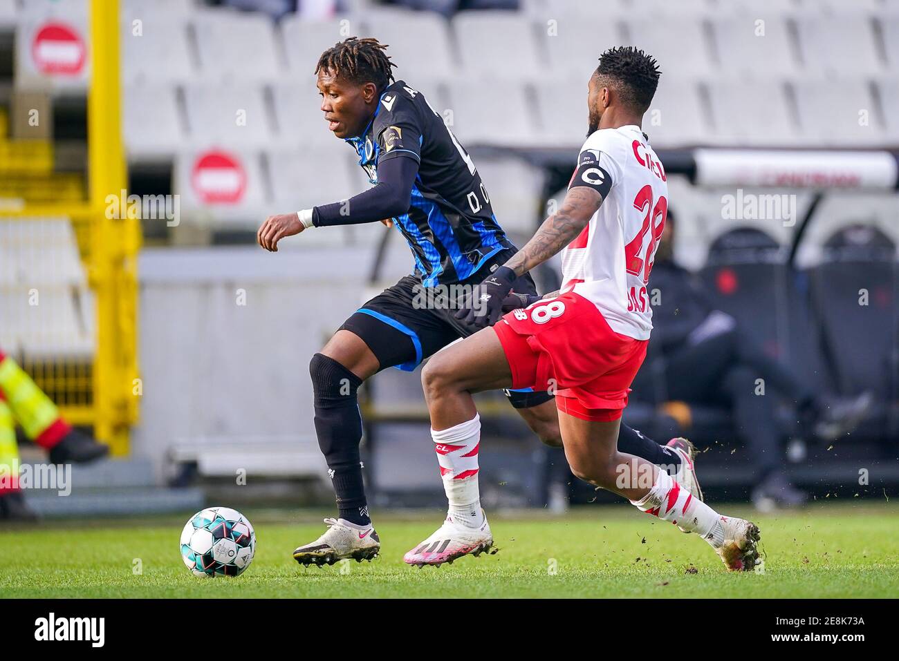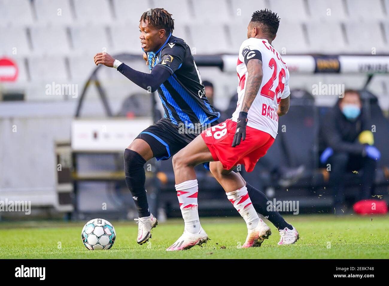 Bruges Belgium 31st Jan 2021 Bruges Belgium January 31 David Okereke Cools Of Club Brugge Samuel Bastien Of Standard De Liege During The Pro League Match Between Club Brugge And Standard